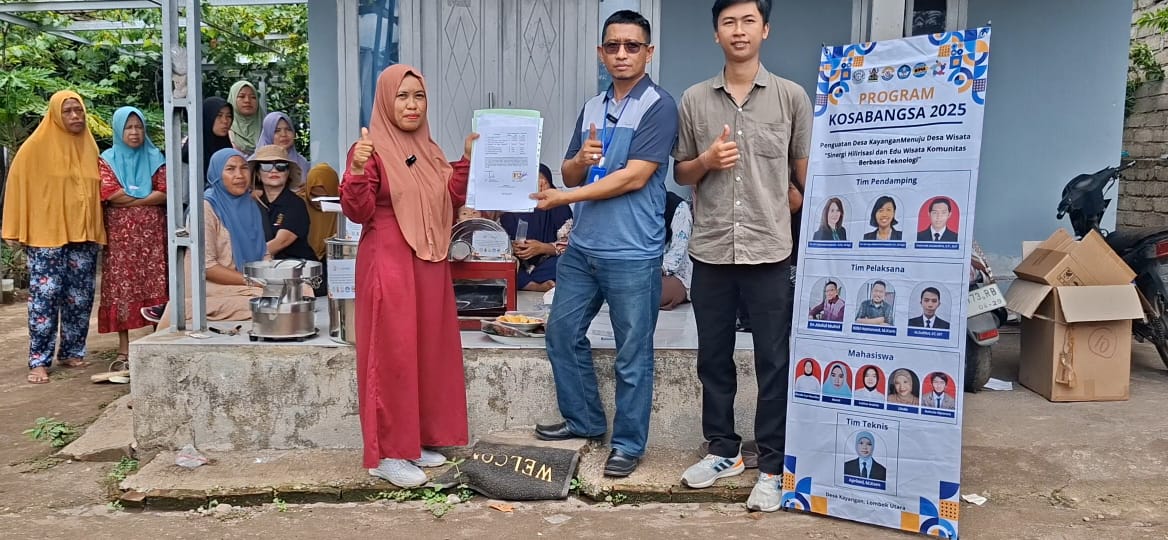 Lombok Utara — Program Kosabangsa 2025 yang dilaksanakan oleh Universitas Bumigora bersama Universitas Mahasaraswati Denpasar membawa dampak nyata bagi peningkatan ekonomi Desa Kayangan, Kecamatan Kayangan, Lombok Utara. Melalui inovasi teknologi pangan dan penguatan pariwisata berbasis digital, dua kelompok mitra KWT ITB Asri dan Pokdarwis Kayangan Genem mengalami peningkatan kapasitas yang signifikan.