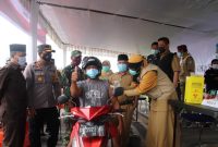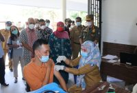Lombok Barat – Vaksinator TNI-Polri dan Pemda Lobar memberikan Layanan Vaksinasi secara Drive Thru di Bundaran Giri Menang Square Lombok Barat, Senin (29/3/2021). Bupati…