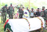 Lombok Tengah – Upacara penyerahan jenazah dan pemakaman (Alm) Sertu, L. Asmara Jaya, dari pihak keluarga kepada Negara, dipimpin langsung Komandan Kodim 1620/Loteng, Letkol…